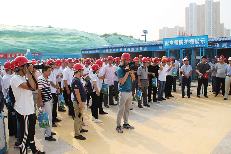 在我公司直屬項目公司主任工程師穆忠翠的引領和講解下,觀摩團一行沿參觀路線先后觀摩了樣板展示區、工地文化墻、生活區、直飲水系統、雨水收集再利用系統、綠色施工標牌、科教樓工程實體、辦公區、職工之家等?,F場的精細化管理和標準化設施、花園式辦公區、綠色施工的各項舉措、文化墻等給大家以強烈震撼,所到之處,觀摩人員連連交口稱贊,并紛紛舉起手機、相機留存影像資料。